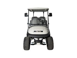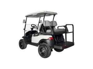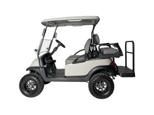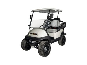 A fully refurbished lifted Club Car Precedent undergoes a bottom-up rebuild, featuring all-new suspension components, batteries, alloy wheels, windscreen, LED lights, side mirrors, re-upholstered seats, and a complete repaint. This cart can be highly customized and is sold in an ‘as new’ condition.