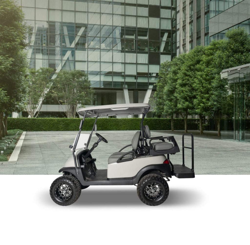 A fully refurbished lifted Club Car Precedent undergoes a bottom-up rebuild, featuring all-new suspension components, batteries, alloy wheels, windscreen, LED lights, side mirrors, re-upholstered seats, and a complete repaint. This cart can be highly customized and is sold in an ‘as new’ condition.