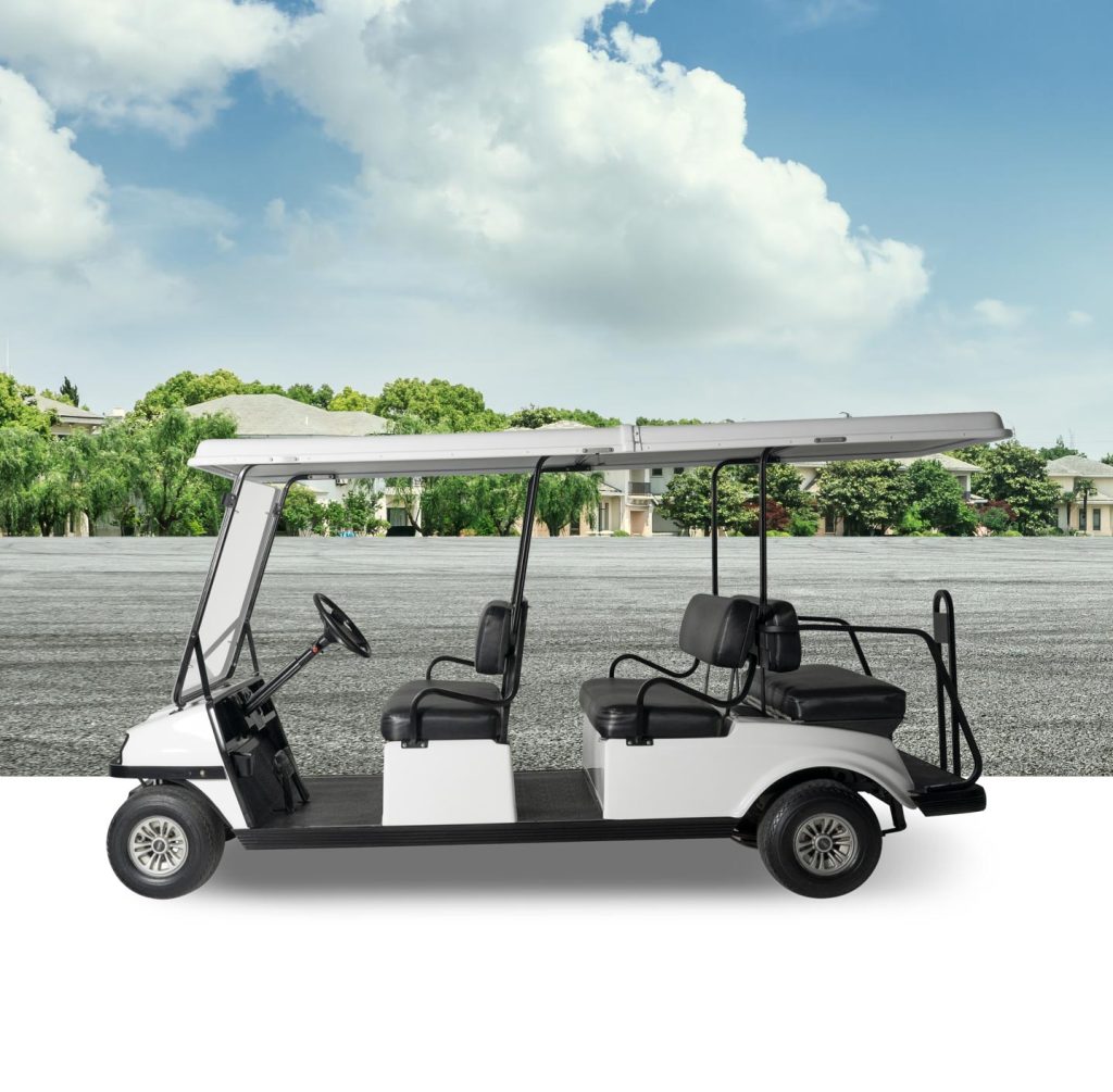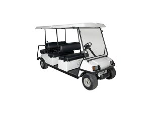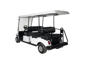 The Transit is a LR6 is a six seater refurbished Club Car DS that has recently undergone extensive refurbishment to meet our highest standards. It features new bodywork, seats, alloy wheels, and other customer touchpoints. The Transit serves as our standard workhorse golf cart, designed to efficiently transport 6 passengers around your event. All carts undergo routine maintenance and cosmetic treatments to ensure they are delivered to you in optimal mechanical and aesthetic condition.