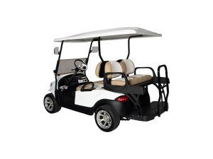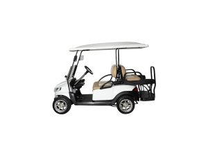 Fully refurbished non lifted four seat Club Car Precedent featuring a brand new long roof, body panels, seats, and dashboard—all made in the USA. Additionally, it includes all-new suspension components, wheels, batteries, windscreen, LED lights, side mirrors, steering wheel, and floor mats. Equipped with a digital key connected to an app for added convenience.