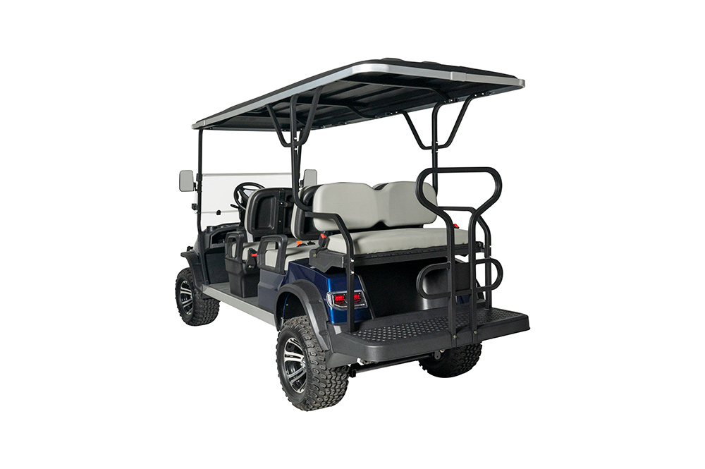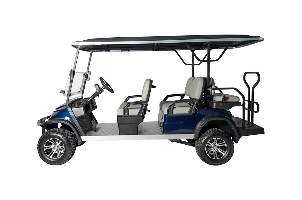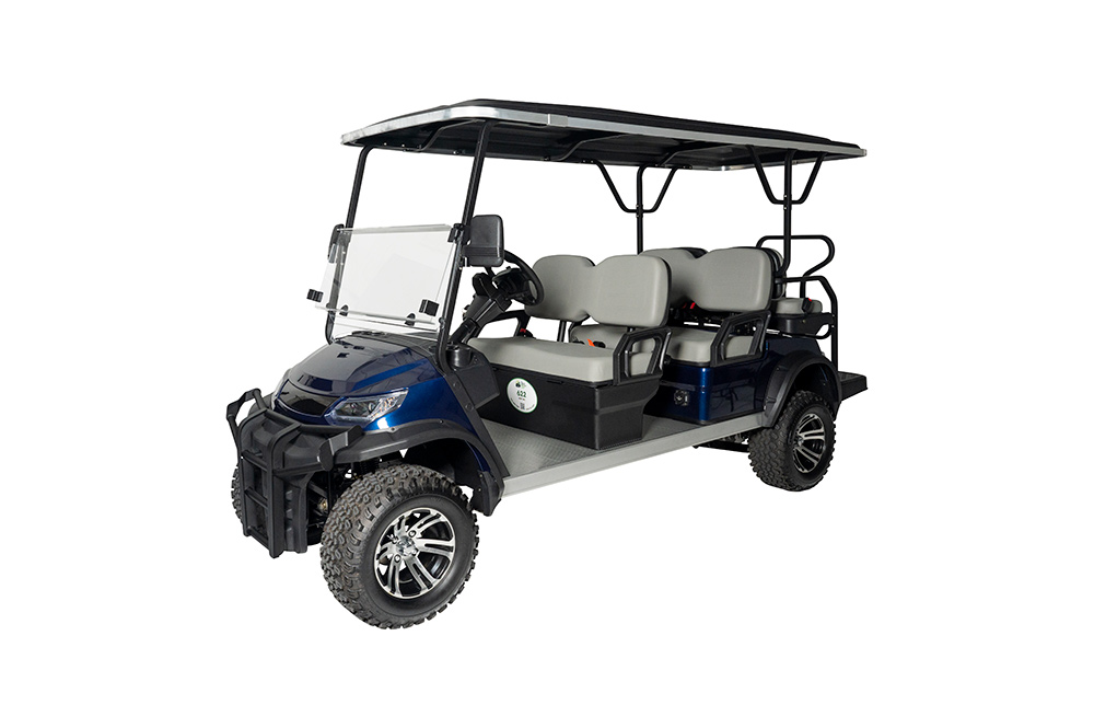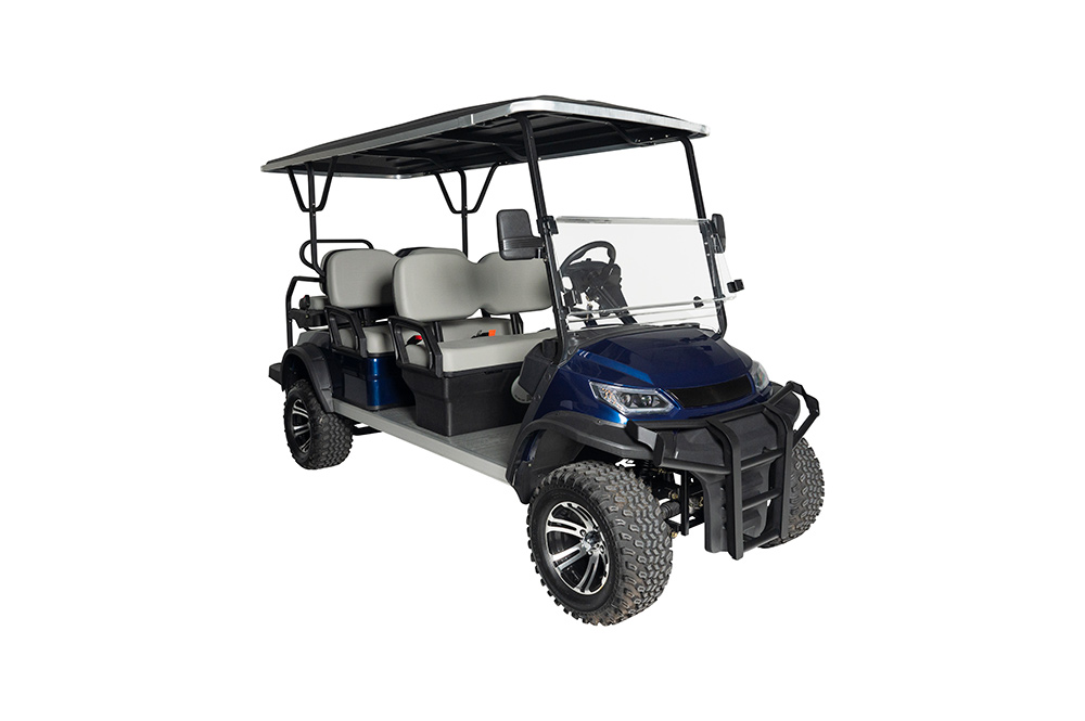 The Jett HR6 is our premium six seat cart in a lifted format. It features a powerful 5kW motor made by Toyota, providing ample power and reliability. To ensure a smooth ride, the cart is equipped with McPherson independent suspension with helical spring + cylinder hydraulic shock absorption. The Jett is ideal for luxury community journeys for larger family groups.