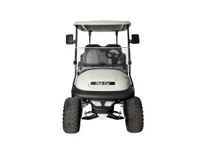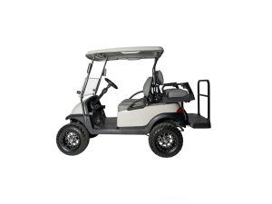 A fully refurbished lifted Club Car Precedent undergoes a bottom-up rebuild, featuring all-new suspension components, batteries, alloy wheels, windscreen, LED lights, side mirrors, re-upholstered seats, and a complete repaint. This cart can be highly customized and is sold in an ‘as new’ condition.